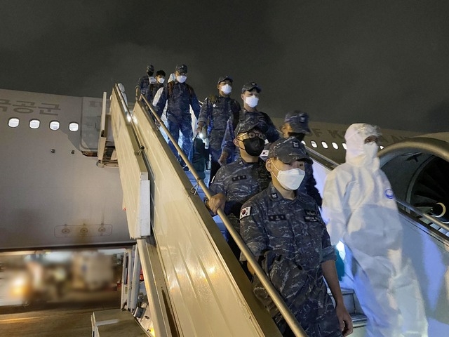 19일 국방부 등에 따르면, 코로나19 집단감염이 발생한 청해부대 34진 301명 전원을 국내로 이송하기 위해 급파된 군 수송기가 이날 오후 현지에 도착했다.